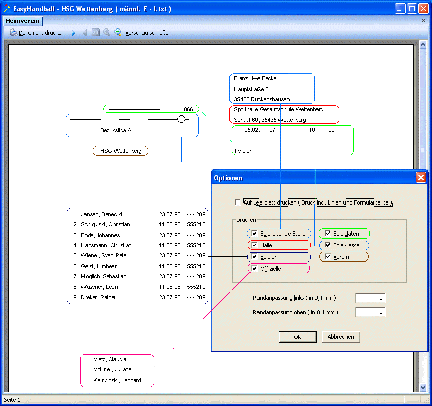 Bild 2: Druckvorschau männl. E am 25.02.2007 10:00 gegen den TV Lich